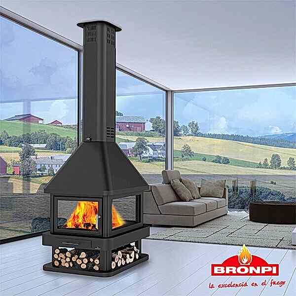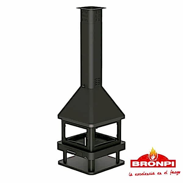 Bronpi Huelva 4 Tarafı Açık Metal Şömine; Orta alanlar için tasarlanmış 4 tarafı camlı çift kademe çelik saç gövde 16 Kw ısıtma kapasitesine sahip kurulumu ve kullanımı kolay.