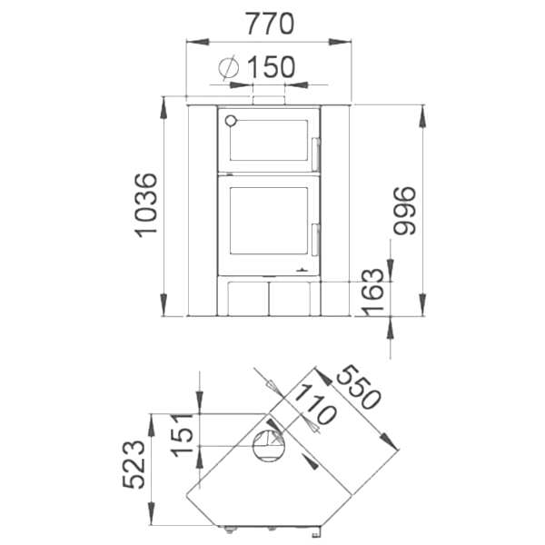 Kuzine Bölümünde Ateştuğla Bulunmaktadır. Cam Temizleme Özelliği olan Üründe üst kullanım alanı ile pişirme ve ısıtma olanağı sağlar. 50 m2 alan ısıtma kapasitesine sahiptir.
