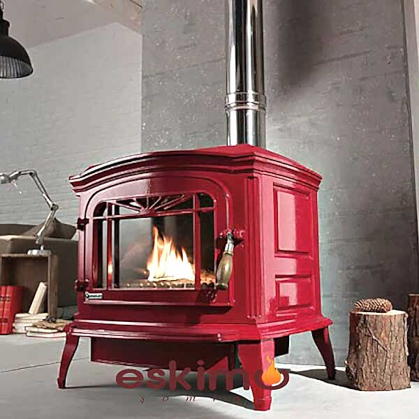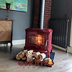 Invicta Bradford Şömine Soba Kırmızı ( Rouge ) Renkli Odun Sobası İthal Invicta Marka Pik Döküm Seramik Boyalı Çekmece Küllüklü Seramik Camlı Klasik Tasarım Kırmızı Soba